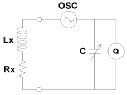 L'oscillation d'un circuit bouchon LC ou d'un oscillateur entretenu (555 par exemple). On mesure la fréquence de résonance libre ou en transmission, et on en déduit les valeurs |