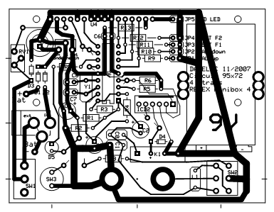 Le montage prends place sur un circuit de 95*72 mm² avec une provision pour un connecteur 6 points vers le programmateur Microchip ICD2.