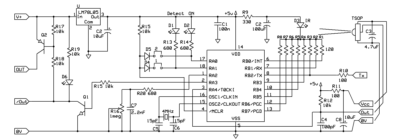 Version PIC16F628 pour les applications en transmission (genre barriere de sécurité portail roulant).