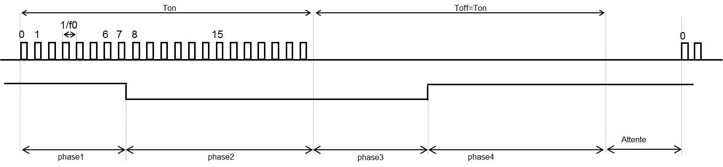 Il n'est pas nécessaire de tirer continuellement des salves, il suffit de tirer les 4 salves toutes les 50 à 100 ms, pour avoir une détection suffisamment rapide pour la majorité des applications.
