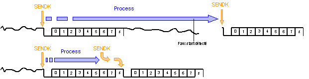 Si on ne fait pas attention, la routine interruption en réception peut comparer l'octet reçu avec l'avant dernier octet. Il faudra donc inventer un dispositif à FIFO.