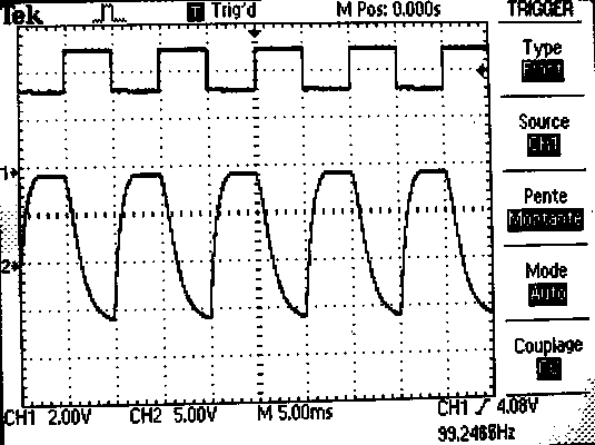 Sur la ligne Rx, on a plus de courant disponible, 10mA sans problème, un optocoupleur standard avec un transfert à 20% est bien suffisant, mais là encore la limitation du courant consommé en aval va jouer sur le temps de montée, et la limitation en débit va apparaître vers quelques kHz.