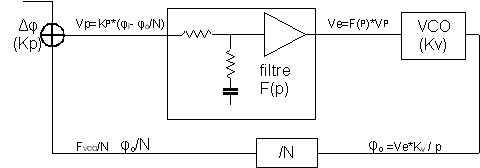 Une Boucle à verrouillage de phase "PLL = Phase Lock Loop" est un système asservi basé sur la mesure d'une erreur de phase, suivi par un filtre, puis un VCO. La boucle de contre réaction est en général constituée d'un diviseur.