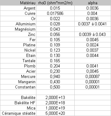 La résistivité rho, augmente en général avec la température rho = rho0 (1 + alpha x (temp - temp0) )