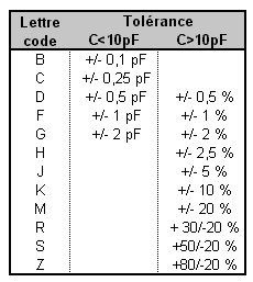 Les valeurs normalisées suivent les mêmes séries que les résistances en sachant qu'en général on descend d'une série par rapport à la tolérance ; par exemple pour +/- 10% on devrait avoir accès à la série E24, en fait on n'aura que la E12. Voir fiche résistances pour les valeurs.