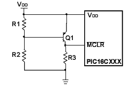 Dans le cas contraire, on forcera MCLRE=1, et la broche /MCLR doit être utilisée, maintenue basse tant que la tension Vdd n'est pas correcte.