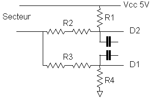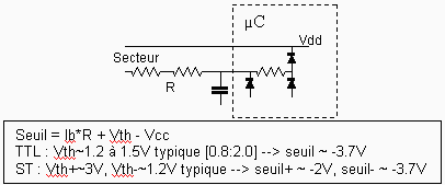 Le LED a naturellement un seuil de l'ordre de 1.6 V, ce qui facilite l'immunité du dispositif de détection du zéro à tensions HF présentes autour du zéro.