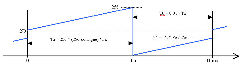 Charger le timer avec N0 ; le compteur s'incrémente toute les 256/Fx