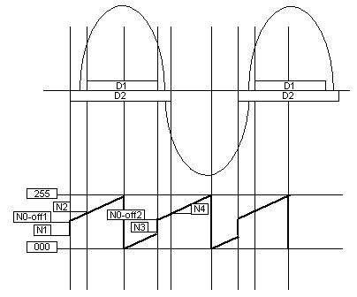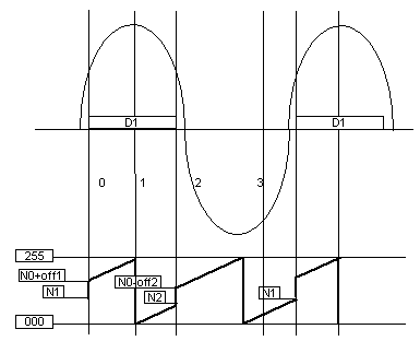 La valeur de maxdim est telle que le compteur déborde à la fin de la demi période, Ta=10ms, Tb=0, N1=0, donc maxdim = 256-0.01*Fx/256 dont maxdim=99.75 [84.1 : 115.4] à 50 Hz.