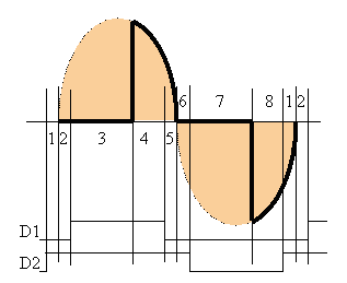 En utilisant deux détections de zéro, D1 et D2, on considère 8 tranches.