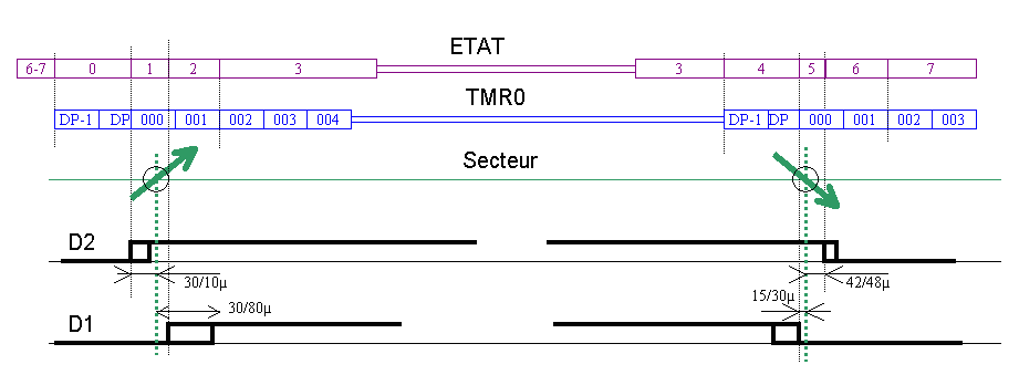 Au passage à zéro du secteur, on charge le timer avec une valeur "N0", sauf qu'en fait on ne connaît pas bien l'instant du 0 secteur.