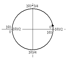 Si on veut asservir la phase autour de ce 0, il faut décaler les valeurs lues pour qu'elles soient continues à cet endroit, sinon les calculs risquent d'être très compliqués. Ainsi l'asservissement travaillera autour de N0/2.