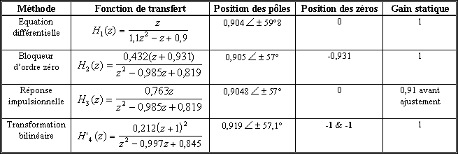 Le transfert équivalent a été simulé : A0=1, A1=2b0-2=-1, A2=1+2b1=0.1, B0=1, B1=-1