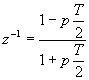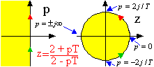Le point p= 0 se transforme en z = 1, tandis que p= se transforme en z = -1