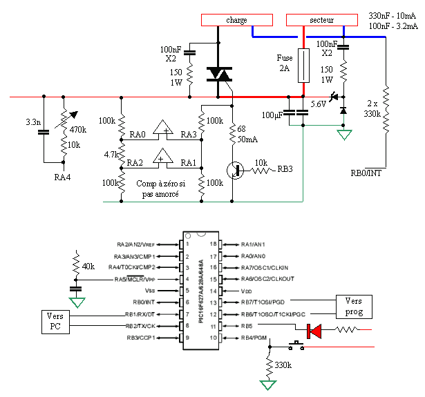 Utilisation d'un microcontrôleur sur le secteurLe circuit cible est un microcontrôleur faible coût, PIC12C508 ou PIC16F628 avec horloge interne Fx=4 MHz -8/+10%.
