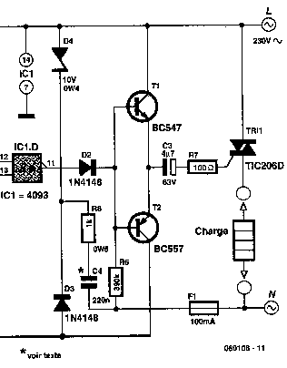 La solution est alors simplement d'amorcer le triac avec une tension continue, mais cela amène une forte consommation, acceptable dans les gradateurs professionnels DMW (lampes de 1 à 2 kW), douloureuse pour les montages grands publics.