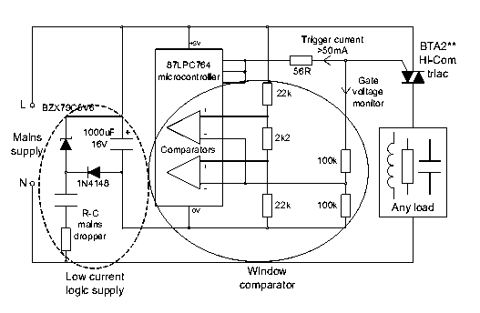Par exemple, le circuit trouvé dans un catalogue et dans une note d'application AN467 de NXP (Philips) : "Philips 51LPC-Microcontrollers & Triacs easily connected"