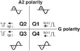 Le quadrant 4 (impulsion +, tension A2 -) est toujours le plus mauvais, le courant est en général 2 fois supérieur à celui des autres quadrants. Les triacs modernes ne peuvent d'ailleurs plus être amorcés sur ce cadran. On les appelle des Q3.