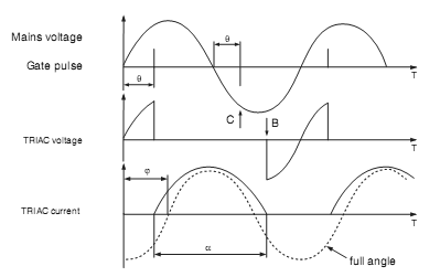 A2. La commande Ig>Igt doit être maintenue le temps nécessaire pour autoriser le courant à dépasser le seuil IL (latch) à partir duquel le triac est amorcé. Ainsi, la largeur de l'impulsion de commande dépend de la vitesse de montée du courant dI/dt. Par exemple avec une charge résistive de 100W (530 Ohms) sur le secteur 230V, la vitesse de montée du courant est de 200 A/s au passage à zéro, et on atteint 70mA (valeur latch par exemple) en 350µs. Cela revient à dire que l'impulsion de commande doit être large au passage à zéro, elle peut être plus fine lorsque la vitesse dI/dt est forte, par exemple lorsque le triac commute au max tension.