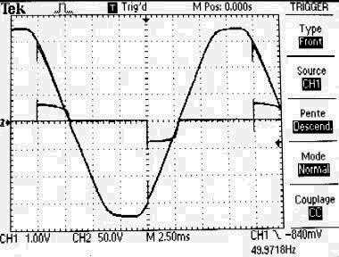 charge de 30W et un triac sensible TIC216D. On voit nettement que la tension