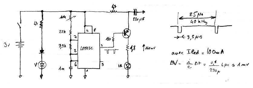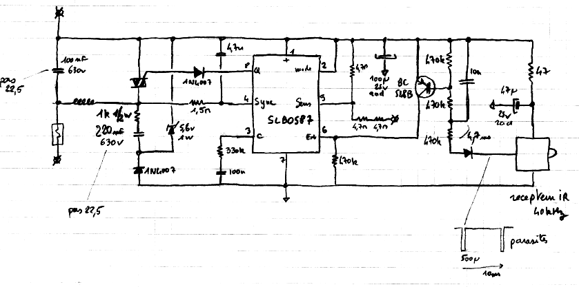Ce montage est basé sur un SLB0587, piloté soit par une touche tactile locale, soit via une liaison IR à 40kHz.