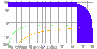 Cette résistance joue aussi un rôle dans les pentes car évidemment elle consomme un certain courant. Paradoxalement, c'est bien elle qui va conditionner la valeur minimale des capacités secteurs C1 & C2. Si R3=1M, elle va prendre quelques µA ce qui est acceptable avec un courant de charge de 160µA (C1=C2=10nF), et un peu moins avec des valeurs plus faibles.