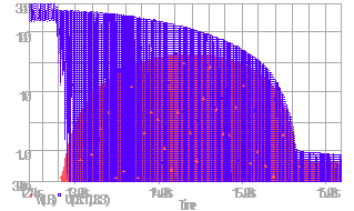 utilise une échelle log, tension en bleu, puissance en rouge, R4C4=10s,