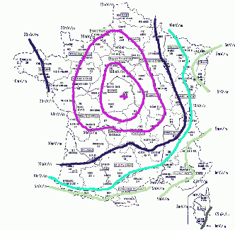 Le champ utile est très fort sur toute la France, le point le plus faible étant l'est de la Corse avec 0.5mV/m.