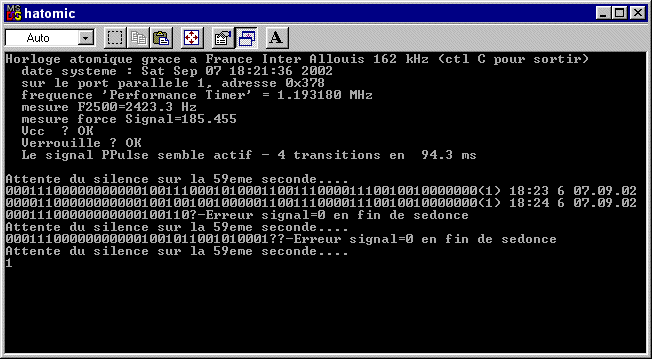 A la fin de la boucle de 0 à 58 secondes, lors de la pause, on a suffisamment de temps pour décoder les 59 bits et mettre à disposition l'heure qui sera valide à la seconde 0 suivante.