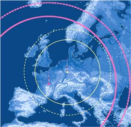 L'émetteur situé à Allouis (dans le Cher, à peu prés au centre de la France) développe une puissance de 2 MW dans la journée et 1 MW dans la nuit (0 à 6h) pour la radiodiffusion en AM de France-Inter. Les signaux horaires sont diffusés en PM. Sa disponibilité est excellente, une interruption de maintenance périodique le mardi entre 0 et 5 heures. L'émetteur DCF77, situé à Mainflingen (près de Frankfort, Allemagne) développe 50 kW et est uniquement consacré à l'émission de signaux horaires en AM. Sa disponibilité est excellente, quelques interruptions en cas d'orage. |
