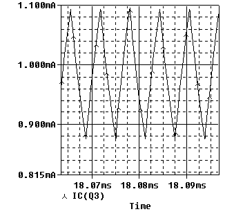 Le mélangeur est un amplificateur différentiel, chargé par un cricuit accordé sur Fint. A ces fréquences là, il est intéressant d'utiliser une simulation d'inductance basée sur Q5, avec un Q de l'ordre de 5, et un Zmax voisin de 30k. L'amplificateur différentiel est piloté par un courant moyen dans Q3 de 1mA, modulé avec +/- 100µA, et on récupère près de 100mVcàc à la fréquence intermédiaire sur le collecteur de Q1 avec 5mVeff à l'entrée, soit plus de 25dB de gain. On peut monter l'injection de 160kHz, en baissant R7, par exemple aller jusqu'à 4.7k, ce qui module le courant Q3 à +/- 800µA. On fera attention à la tension base Q1 générée par la variation de Ib Q1.