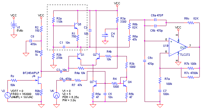 Dans tous les cas, nous savons que la sélectivité de l'étage d'entrée est fondamentale, nous utiliserons un circuit accordé amplifié par un FET. Le gain est de l'ordre de 10dB.