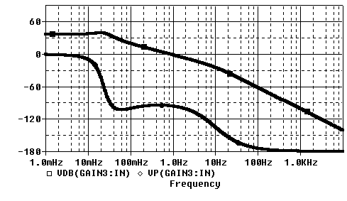 Pour diminuer le bruit injecté dans le VCO à cause de la fréquence de comparaison, on installe un troisième pole avec une capacité derrière le filtre principal, à une fréquence de l'ordre de 10Hz pour ne pas perturber le transfert de la boucle.