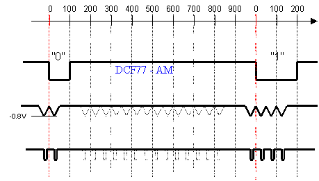Le point de départ est la détection de fin de minute. Il n'y a aucune modulation pendant au moins 1 seconde. Cette détection est réalisée par un timer remis à zéro à transition détectée. Avant de remettre à zéro, le timer est lu. Si le temps est supérieur à 1 seconde, nous sommes sur la seconde zéro.
